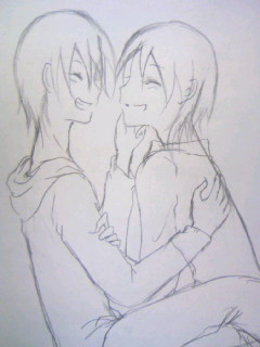 えーすけのちゃんとした絵描こうと思ったら全裸になって、一輝と晶先生のらぶらぶ絵は意外と良く描けて、最後は途中まで漫画描いてみた。